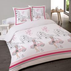 Housse de couette 200x200 Fashion girl + 2 taies coton 52 fils