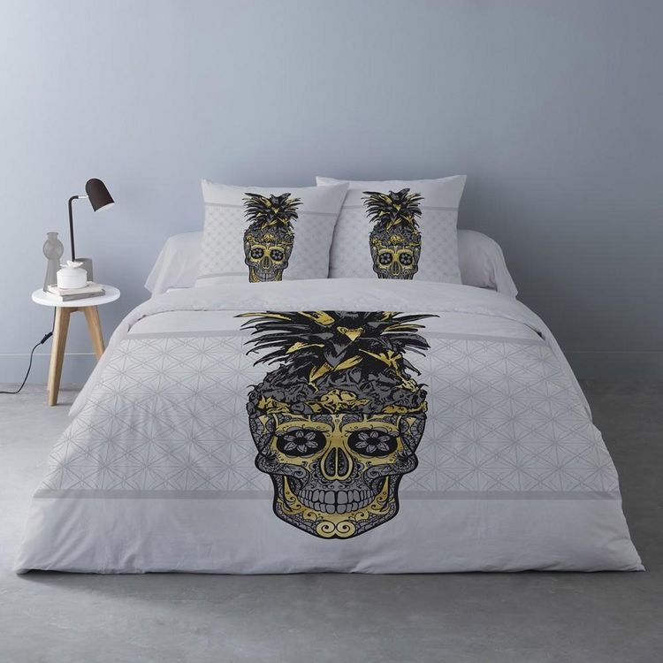 Housse de couette 240x220 Crâne d'or + 2 taies coton 52 fils