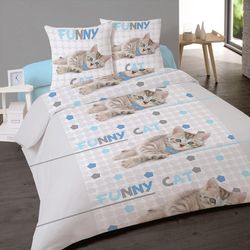 Housse de couette 240x220 Funny cat + 2 taies coton 41 fils