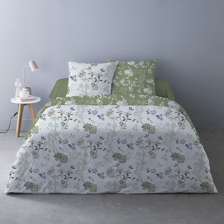 Habillez votre lit à votre image grâce à cette superbe et douce housse de couette Hana vert pour lit 2 personnes fabriquée en 100% polyester.Cette housse de couette 3 pièces Hana est composée de :Une housse de couette 240x220 cm finition boutonsDeux taies d'oreiller 63x63 cmCette housse de couette e