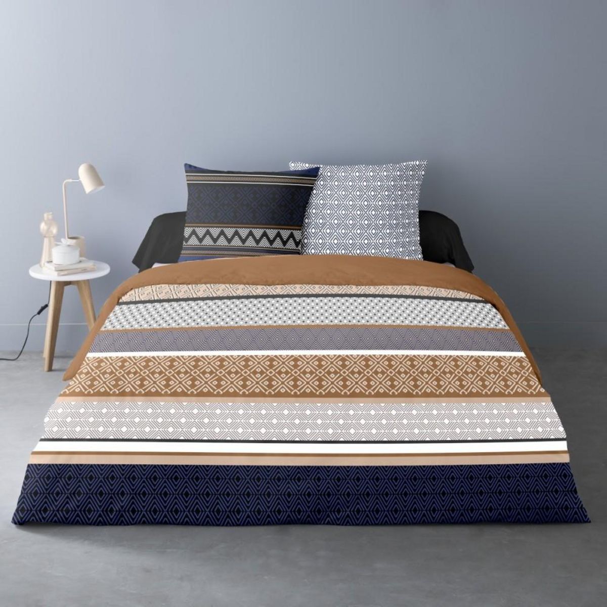 Housse de couette 240x220 LOGAN + 2 taies Percale de coton