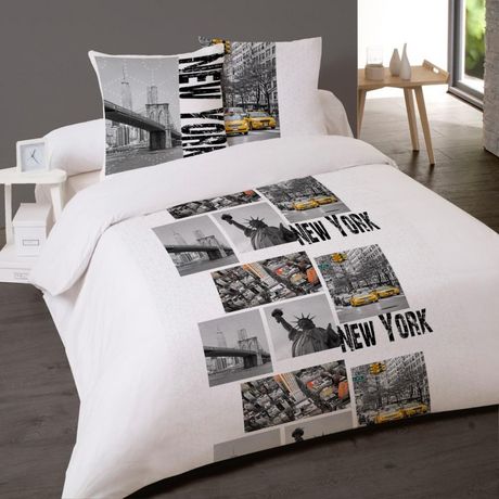 Housse de couette 240x220 NY SKYLINE + 2 taies 100% coton 57 fils