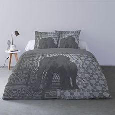 Découvrez la parure de couette SUKI imprimée en 100% coton 42fils/cm2 avec un magnifique Eléphant. Elle comprends une housse de couette 240x220 et 2 taie d'oreiller assorties.Cette parure de couette 3 pièces SUKI est composée de :Une housse de couette 240X220 cm (avec boutons)Deux taies d'oreiller p