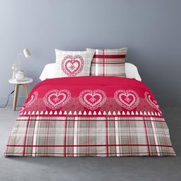 Housse de couette 260x240 Cœur de charme + 2 taies coton flanelle