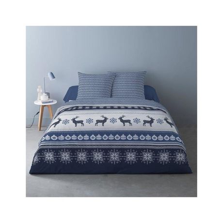 Housse de couette 260x240 FENRIS BLEU + 2 taies matière Polaire