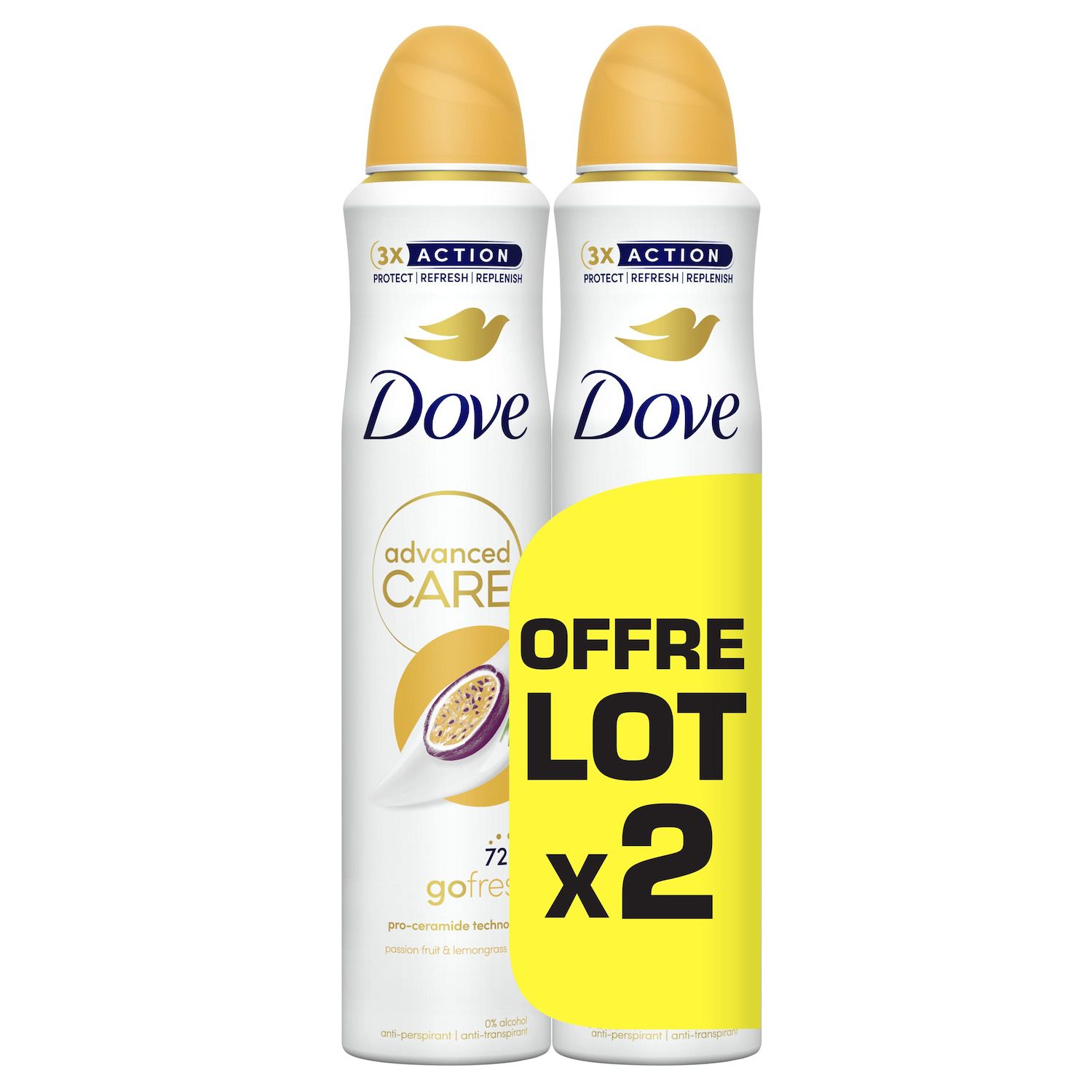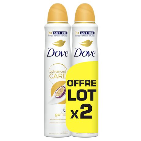 Prenez soin de vos aisselles avec le déodorant spray anti-transpirant Dove Advanced Care Parfum Parfum Fruit de la Passion & Citronnelle. L'anti-transpirant Dove Advanced Care est doux pour les aisselles, même après le rasage. À la technologie hydratante triple action, Dove Advanced Care prend soin de vos aisselles au quotidien et les laisse douces et lisses. Grâce à sa technologie anti-transpirante brevetée, il aide à combattre efficacement la transpiration et vous procure 72 h de protection anti-transpirante. Sans alcool et formulés avec le meilleur du soin Dove, les anti-transpirants Dove Advanced Care protègent la peau délicate des aisselles. Vous pouvez être confiante toute la journée ! L'emballage de ce produit est majoritairement recyclable. Ce déodorant est en lot de 2. Dove offre aux femmes de véritables rituels beauté pour qu'elles prennent soin d'elles au quotidien. En mettant son expertise technologique au service de la beauté et de l'hygiène corporelle, la marque propose des soins hautement performants pour le corps. Ses maîtres-mots qualité, simplicité et efficacité se retrouvent dans chacun de ses produits uniques. À travers son Projet pour l'Estime de Soi, Dove œuvre depuis plus de 15 ans pour renforcer la confiance corporelle des jeunes filles à travers le monde. D'ici à 2030, nous aurons aidé 250 millions de jeunes à renforcer leur estime de soi. Parce que la beauté n'a ni formes, ni tailles, ni couleurs, la marque s'engage à réaliser ses supports de communication avec de vraies femmes et non des mannequins professionnels. Dove écrit sa version de la beauté à vos côtés : positive, authentique et réelle.