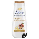 La crème de douche Dove Advanced Care Surgras nourrissant, à l'huile d'Argan, nourrit et prend soin des peaux sèches, et procure une sensation de peau douce comme avec un lait corporel pendant 24 h.