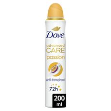 Prenez soin de vos aisselles avec le déodorant spray anti-transpirant Dove Advanced Care Parfum Parfum Fruit de la Passion & Citronnelle. L'anti-transpirant Dove Advanced Care est doux pour les aisselles, même après le rasage. À la technologie hydratante triple action, Dove Advanced Care prend soin de vos aisselles au quotidien et les laisse douces et lisses. Grâce à sa technologie anti-transpirante brevetée, il aide à combattre efficacement la transpiration et vous procure 72 h de protection anti-transpirante. Sans alcool et formulés avec le meilleur du soin Dove, les anti-transpirants Dove Advanced Care protègent la peau délicate des aisselles. Vous pouvez être confiante toute la journée ! L'emballage de ce produit est majoritairement recyclable. Dove offre aux femmes de véritables rituels beauté pour qu'elles prennent soin d'elles au quotidien. En mettant son expertise technologique au service de la beauté et de l'hygiène corporelle, la marque propose des soins hautement performants pour le corps. Ses maîtres-mots qualité, simplicité et efficacité se retrouvent dans chacun de ses produits uniques. À travers son Projet pour l'Estime de Soi, Dove œuvre depuis plus de 15 ans pour renforcer la confiance corporelle des jeunes filles à travers le monde. D'ici à 2030, nous aurons aidé 250 millions de jeunes à renforcer leur estime de soi. Parce que la beauté n'a ni formes, ni tailles, ni couleurs, la marque s'engage à réaliser ses supports de communication avec de vraies femmes et non des mannequins professionnels. Dove écrit sa version de la beauté à vos côtés : positive, authentique et réelle.
