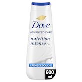 Élue produit de l'année 2025 par les consommateurs en France, la crème de douche Dove Advanced Care Nutrition Intense 600 ml restaure l'hydratation naturelle de la peau et procure une sensation de peau douce comme avec un lait corporel pendant 24 h. Testée dermatologiquement, la formule de cette crème de douche contient des actifs hydratants et nourrissants d'origine végétale. Respectueux du microbiome et doté de la technologie MicroMoisture contenant des millions de micro-gouttes de soin, ce gel douche femme Dove laisse votre peau douce. Sa texture crémeuse se transforme sur la peau en une mousse très onctueuse pour un véritable moment de bien-être sous la douche. Dove Advanced Care est notre gamme de gels douche la plus experte en soin et convient à l'hygiène quotidienne. L'emballage de ce gel douche est entièrement recyclable. Dove offre aux femmes de véritables rituels beauté pour qu'elles prennent soin d'elles au quotidien. En mettant son expertise technologique au service de la beauté, la marque propose des soins hautement performants pour le corps. Ses maîtres-mots qualité, simplicité et efficacité se retrouvent dans chacun de ses produits uniques. À travers son Projet pour l'Estime de Soi, Dove œuvre depuis plus de 15 ans pour renforcer la confiance corporelle des jeunes filles à travers le monde. D'ici à 2030, nous aurons aidé 250 millions de jeunes à renforcer leur estime de soi. Parce que la beauté n'a ni formes, ni tailles, ni couleurs, la marque s'engage à réaliser ses supports de communication avec de vraies femmes et non des mannequins professionnels. Dove écrit sa version de la beauté à vos côtés : positive, authentique et réelle.