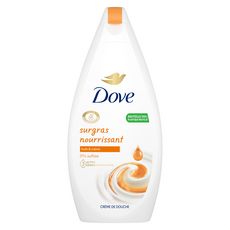 La crème de douche Dove Surgras Huile Crème, au format 450 ml, a été spécialement conçue pour les peaux sèches.
