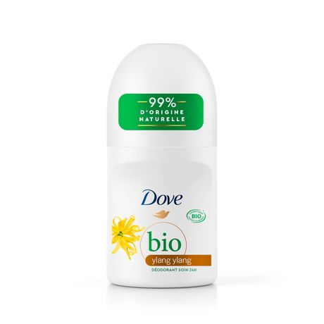 Découvrez le nouveau déodorant bille Ylang-Ylang certifié bio, au format 50 ml. Efficace pendant 24 h contre les mauvaises odeurs, ce déodorant bille laisse votre peau douce et hydratée. Testé sous contrôle dermatologique et certifié Cosmos Organic par Ecocert, il est composé à 99 % d'ingrédients d'origine naturelle. Formulé sans alcool, ce déodorant certifié bio est doux pour la peau délicate des aisselles. Vous allez adorer son parfum subtil 100 % d'origine naturelle aux douces notes de fleur d'ylang-ylang. L'emballage du déodorant Dove est recyclable, pensez au tri. Découvrez également le déodorant femme Dove bio Ylang-Ylang au format éco-spray. Dove offre aux femmes de véritables rituels de beauté pour qu'elles prennent soin d'elles au quotidien. En mettant son expertise technologique au service de la beauté, la marque propose des soins hautement performants pour le corps. Ses maîtres-mots qualité, soin et efficacité se retrouvent dans chacun de ses produits uniques. À travers son Projet pour l'Estime de Soi, Dove œuvre depuis plus de 15 ans pour renforcer la confiance corporelle des jeunes filles à travers le monde. Parce que la beauté n'a ni formes, ni tailles, ni couleurs, la marque s'engage à réaliser ses supports de communication avec de vraies femmes et non des mannequins professionnels. Dove écrit sa version de la beauté à vos côtés : positive, authentique et réelle.