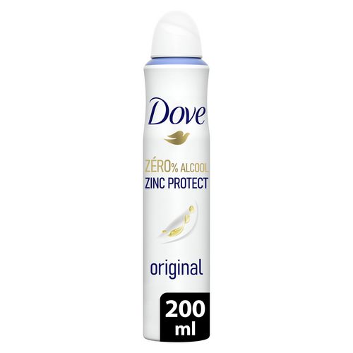 Le déodorant spray compressé Dove Original prend soin de votre peau. Le déodorant spray Dove 0% alcool vous apporte notre protection déodorante la plus efficace avec 72 h anti-odeurs, tout en restant doux pour votre peau. Sa technologie au zinc, un minéral naturellement antibactérien, offre une double action anti-odeurs. D'une part, il combat efficacement les bactéries à l'origine des mauvaises odeurs, d'autre part, il piège et neutralise les mauvaises odeurs pour plus de fraîcheur. Avec son unique ¼ de crème hydratante, Dove prend soin de votre peau. De plus, son flacon et son bouchon sont majoritairement recyclables. Dove offre aux femmes de véritables rituels beauté pour qu'elles prennent soin d'elles au quotidien. En mettant son expertise technologique au service de la beauté, la marque propose des soins hautement performants pour le corps. Ses maîtres-mots qualité, simplicité et efficacité se retrouvent dans chacun de ses produits uniques. À travers son Projet pour l'Estime de Soi, Dove œuvre depuis plus de 15 ans pour renforcer la confiance corporelle des jeunes filles à travers le monde. D'ici à 2030, nous aurons aidé 250 millions de jeunes à renforcer leur estime de soi. Parce que la beauté n'a ni formes, ni tailles, ni couleurs, la marque s'engage à réaliser ses supports de communication avec de vraies femmes et non des mannequins professionnels. Dove écrit sa version de la beauté à vos côtés : positive, authentique et réelle.