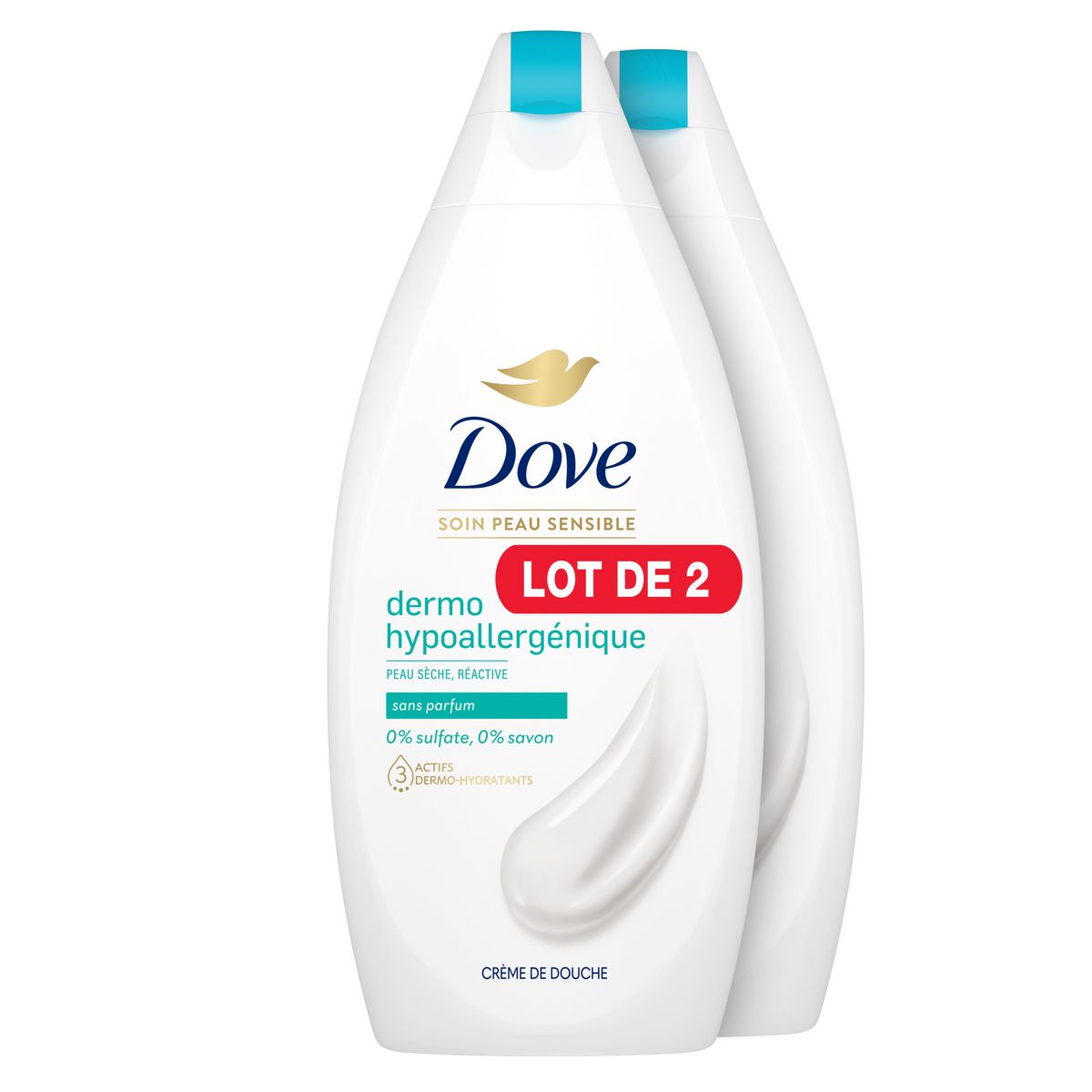 La crème de douche Dove Dermo Hypoallergenique, au format 400 ml et en lot de 2, a été spécialement conçue pour les peaux sensibles.