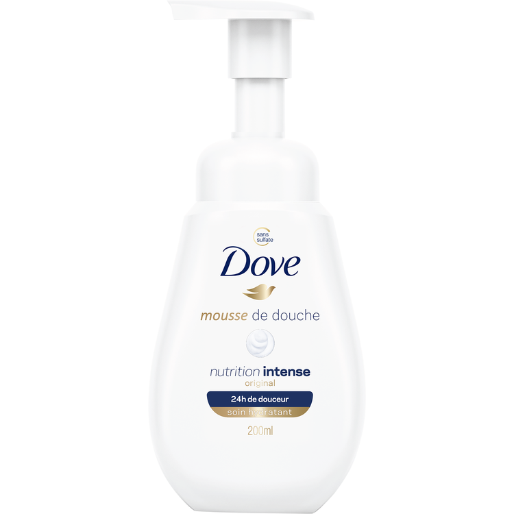 Dove est née aux Etats-Unis en 1957 avec la production de pains de toilette contenant ¼ de crème hydratante. La marque se distinguait déjà de ses concurrents en offrant un soin spécifique pour tous les types de peau. Avec l’expérience et grâce à une étroite collaboration avec le monde médical, Dove a approfondi ses recherches et a perfectionné ses produits de haute qualité pour le corps. Tous les produits Dove font l'objet de tests dermatologiques. La qualité, la simplicité et l’efficacité sont des valeurs chères à la marque. Dove souhaite mettre son expertise technologique au service de la beauté. La marque s’affirme désormais en tant qu’expert de la nutrition et de la réparation et propose des soins hautement efficaces. Dove offre aux femmes de vrais rituels de beauté pour qu’elles prennent soin d’elles au quotidien lors de leur douche et leur bain. Découvrez une expérience unique de douceur sous la douche ! Pour la première fois en 20 ans, Dove dévoile son flacon pompe auto moussant, sans gaz propulseur, qui forme instantanément et en un seul geste un nuage de mousse délicieusement douce et légère, enveloppant votre peau pour la laver et la nourrir intensément. Une mousse facile à rincer qui procure un moment de plaisir et de bien-être. La nouvelle mousse de douche transforme la toilette quotidienne en une véritable expérience sensorielle et un moment de pure douceur, idéal pour améliorer sa perception de soi. Une douche soin qui permet d'affronter la journée qui débute quoi qu'il advienne ou de la clôturer par une apaisante sensation de douceur et de légèreté. Une formule lavante douce inspirée des soins visage et au quart de crème hydratante Dove pour 24h de douceur. La base lavante Dove, sans sulfate et au pH doux, combine des agents lavants et moussants très doux, dont le glutamate également utilisé dans les soins nettoyants pour le visage. Elle offre un respect optimal de la peau et des protéines et lipides cutanés. Un nouveau geste qui transforme l’expérience sous la douche : doux comme une caresse, nourrissant comme un soin ! Gel Douche Mousse