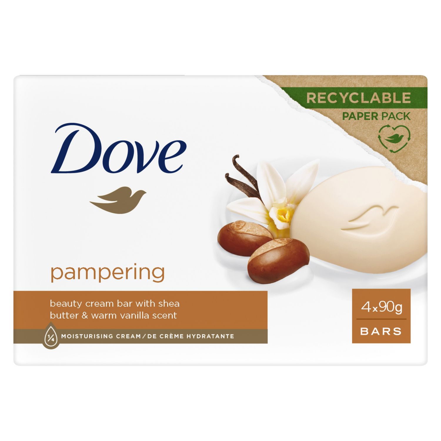 Rien de tel qu'une peau douce et lisse et de profiter de cette agréable sensation au quotidien. Le pain de toilette Dove Beurre de Karité en lot de 4 associe une formule nourrissante contenant ¼ de crème hydratante à des agents nettoyants ultra-doux pour respecter la fonction barrière de la peau et maintenir son hydratation naturelle. Résultat : votre peau est douce et belle. Sa texture crémeuse enveloppante vous procure un véritable moment de bien-être sous la douche. Ce pain de toilette 3-en-1 — visage, corps et mains — convient à l'hygiène quotidienne. L'emballage papier de ce lot de 4 est majoritairement recyclable. Dove offre aux femmes de véritables rituels beauté pour qu'elles prennent soin d'elles au quotidien. En mettant son expertise technologique au service de la beauté, la marque propose des soins hautement performants pour le corps. Ses maîtres-mots qualité, simplicité et efficacité se retrouvent dans chacun de ses produits uniques. À travers son Projet pour l'Estime de Soi, Dove œuvre depuis plus de 15 ans pour renforcer la confiance corporelle des jeunes filles à travers le monde. D'ici à 2030, nous aurons aidé 250 millions de jeunes à renforcer leur estime de soi. Parce que la beauté n'a ni formes, ni tailles, ni couleurs, la marque s'engage à réaliser ses supports de communication avec de vraies femmes et non des mannequins professionnels. Dove écrit sa version de la beauté à vos côtés : positive, authentique et réelle.