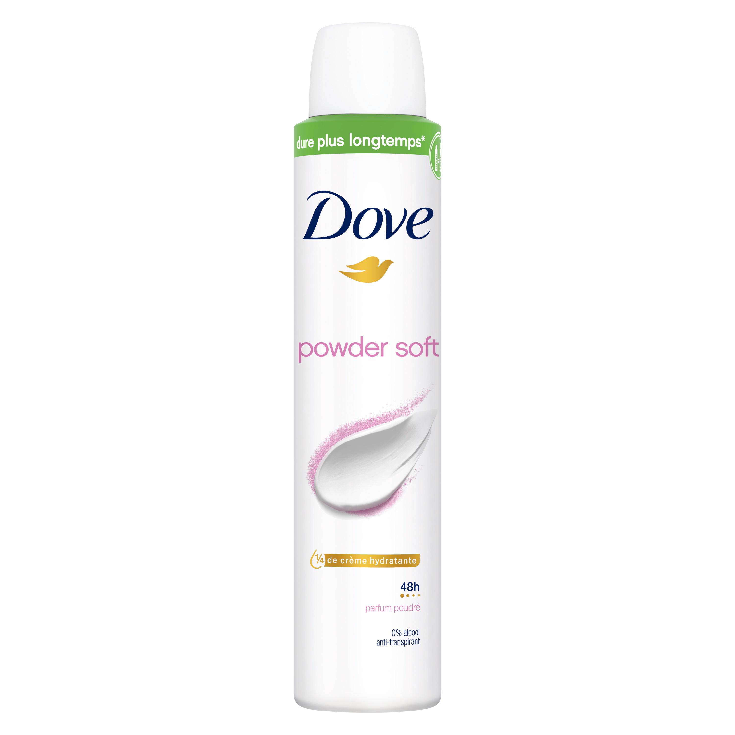 Prenez soin de vos aisselles avec le déodorant spray anti-transpirant Dove Powder Soft. Dove Powder Soft est doux pour la peau des aisselles. Ce déodorant anti-transpirant aide à combattre les mauvaises odeurs et vous procure une protection de 48 h contre la transpiration. Dove Powder Soft est formulé avec 1/4 de crème hydratante et un doux parfum poudré, de quoi être confiante toute la journée ! Son format semi-compressé de 200 ml vous offre autant d'utilisations qu'un anti-transpirant Dove au format de 250 ml. Dove offre aux femmes de véritables rituels de beauté pour qu'elles prennent soin d'elles au quotidien. En mettant son expertise technologique au service de la beauté, la marque propose des soins hautement performants pour le corps. Ses maîtres-mots qualité, simplicité et efficacité se retrouvent dans chacun de ses produits uniques. À travers son Projet pour l'Estime de Soi, Dove œuvre depuis plus de 15 ans pour renforcer la confiance corporelle des jeunes filles à travers le monde. Parce que la beauté n'a ni formes, ni tailles, ni couleurs, la marque s'engage à réaliser ses supports de communication avec de vraies femmes et non des mannequins professionnels. Dove écrit sa version de la beauté à vos côtés : positive, authentique et réelle.
