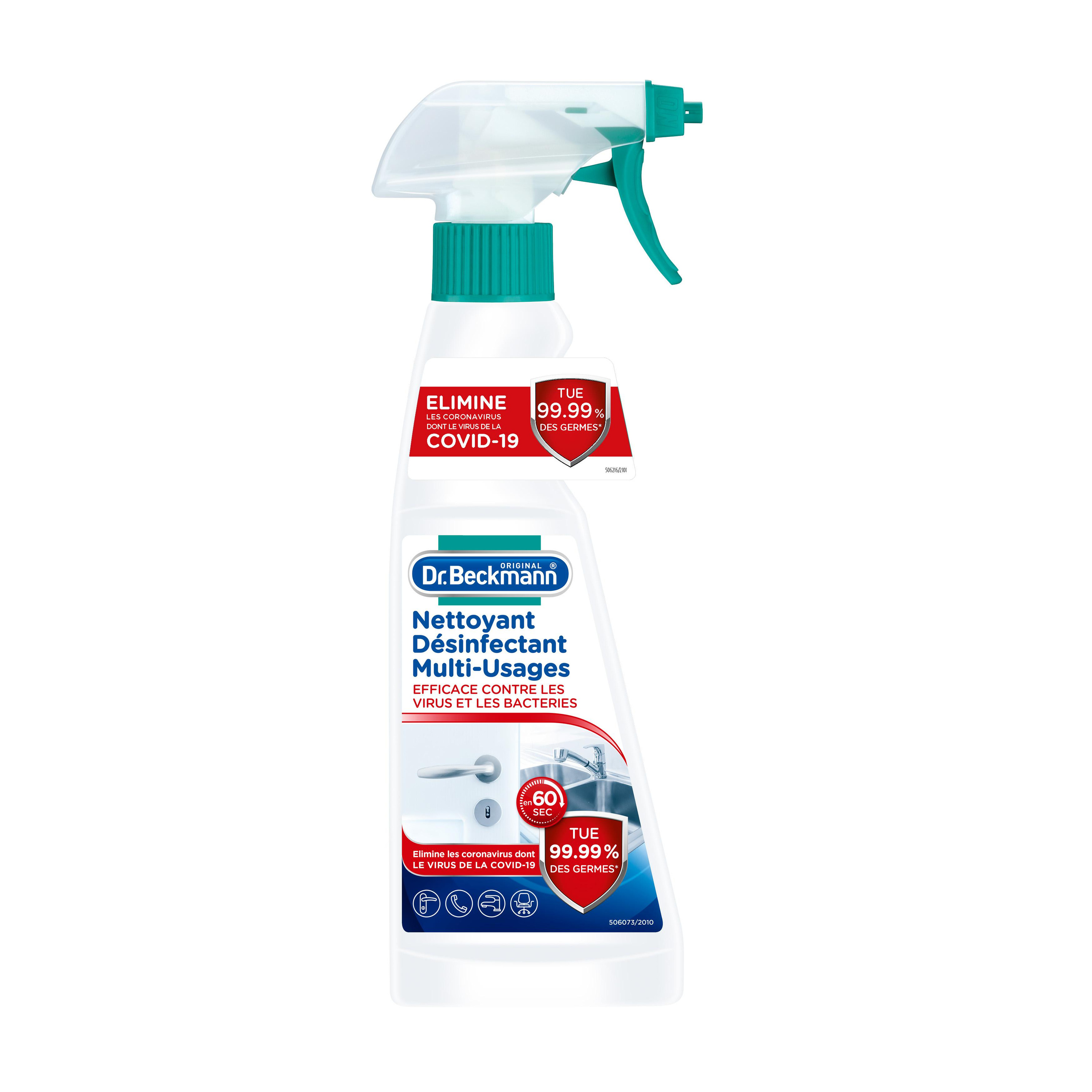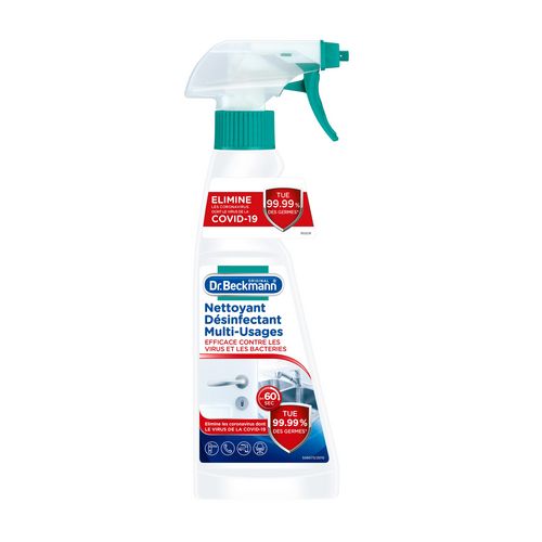 Les virus, les bactéries et les levures se transmettent facilement au contact d'objets du quotidien comme les poignées de porte, le téléphone ou les toilettes. La formule antimicrobienne du Nettoyant Désinfectant Multi-Usages Dr. Beckmann : • Elimine efficacement les Adénovirus, Norovirus, Rotavirus et virus enveloppés dont les Coronavirus en 60 secondes (tests réalisés à 20 °C en condition de saleté selon les normes EN 14476:2019 et 16777:2018). • Tue les bactéries et les levures (Candida albicans) en 60 secondes (tests réalisés à 20 °C en condition de saleté selon les normes EN 1276:2019, EN 1650 et EN 13697). Pour une maison parfaitement saine !