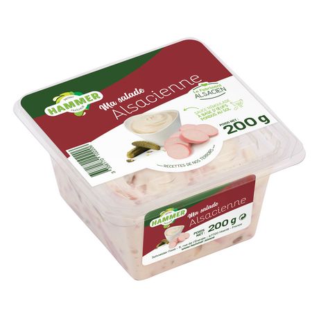 Ingrédients : Rémoulade 47% ( huile de colza , eau, amidon de mais, jaune d’OEUF, MOUTARDE (eau, graines de MOUTARDE, vinaigre d’alcool, sel, épices), vinaigre de vin, vinaigre d’alcool, sel, stabilisant : farine de graines de caroube, épaississants : gomme de guar et de xanthane, extraits d’épices) roulade de viande 40% (viande de porc, gras de porc, eau, sel nitrité ( sel, conservateur : nitrite de sodium), sucre , dextrose, epices, extraits naturels d’epices,antioxydant : acide ascorbique, stabilisant : diphosphate), cornichons (cornichons, vinaigre d’alcool, eau ,sel)