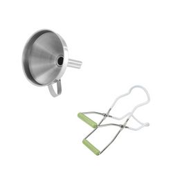 - UTILISATION : Avec l'entonnoir, vous mettez en pot votre précieux liquide , la pince à bocaux est parfaite pour déposer et extraire facilement vos bocaux de l'eau bouillante , le tout sans risquer de vous brûler