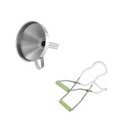 - COMPOSITION : Pour réussir vos confitures et gelées maison, la pince à bocaux est en acier inoxydable avec des poignées en plastique résistant à la chaleur , l'entonnoir à confiture avec anse est en acier inoxydable, matériau résistant
