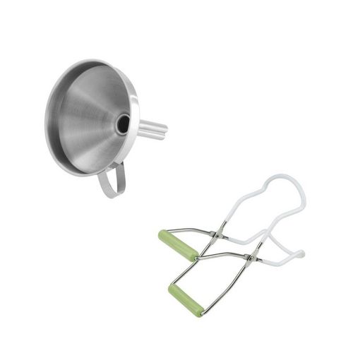 - PETIT + : La pince à bocal antidérapante est compatible avec toutes tailles de bocaux , l'entonnoir inox supporte la chaleur de la confiture artisanale et vous protège avec son anse , il est polyvalent et vous servira souvent en cuisine