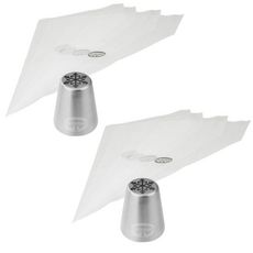 Épatez vos proches avec cette superbe douille flocon de neige et ses quatre poches à douille transparentes. La douille flocon de neige est l'élément phare pour des pâtisseries et gâteaux d'exception, en accord avec la saison des fêtes de fin d'année. En acier inoxydable, elle se nettoie parfaitement au lave-vaisselle, est réemployable et résistante. Les poches à douilles, quant à elles, sont d'une qualité à la hauteur de Dr Oetker.