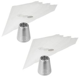 Découvrez le lot de 8 poches à douille et deux douilles flocon de neige de Dr Oetker, parfait pour embellir vos créations pâtissières lors des fêtes de fin d'année. La douille, en acier inoxydable, est résistante et réutilisable, tandis que les poches en plastique de qualité assurent une utilisation facile et sans désordre. Avec des dimensions optimales, la douille mesure 4,3 cm de hauteur et 3,7 cm de diamètre en extrémité, tandis que les poches à douille mesurent 36 cm de longueur et 20 cm de largeur. Impressionnez vos proches avec des décorations de gâteaux uniques et élégantes grâce à cet ensemble pratique et esthétique.