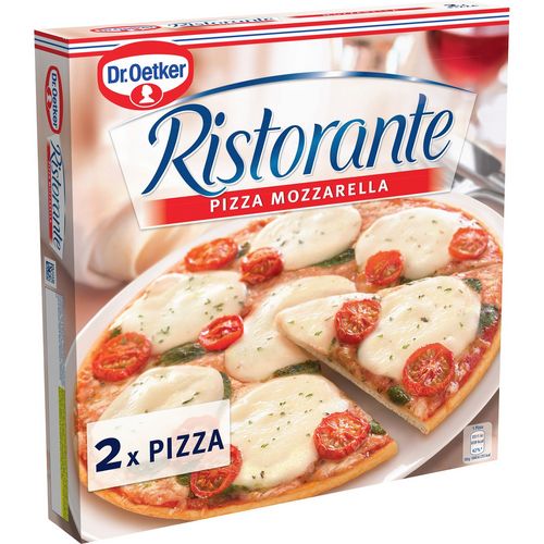 Savourez la pizza Ristorante Mozzarella. Sa pâte fine et croustillante est généreusement garnie de tomates mûres, de Mozzarella fondante et de basilic. Une recette traditionnelle pour les amoureux de la vraie pizza italienne !