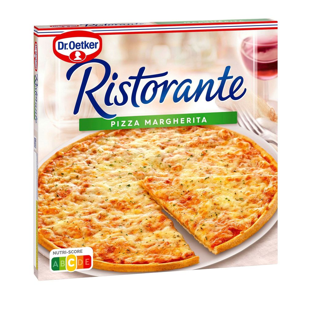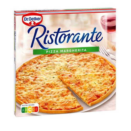 Savourez la pizza Ristorante Margherita Une pâte toujours fine et croustillante, légèrement irrégulière généreusement garnie de fromage et d'une sauce tomate signature ! Nutriscore C.