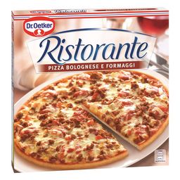 Ingrédients : 29% purée de tomate, farine de BLÉ, 11% viande de boeuf haché, 5,8% FROMAGE EMMENTAL, 5,8% FROMAGE MOZZARELLA, huile de colza, 3,8 % oignons frits (oignons, huile de colza), eau, 2,6 % tomates en morceaux, levure de boulangerie, sucre, sel, amidon modifié, exhausteur de goût (glutamate monosodique), épices, champignons en poudre, herbes aromatiques, ail, protéines végétales hydrolysées, maltodextrine, caramel, concentré de tomate, oignons, carotte en poudre.