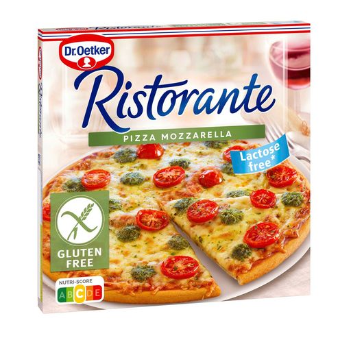 Succombez à la pizza Ristorante Sans Gluten Mozzarella. Composée d'une pâte à base de farine de riz de qualité supérieure et richement garnie de sauce tomate, de Mozzarella et de basilic, cette pizza ravira tous les amateurs de recettes gourmandes qui sont intolérants au gluten.