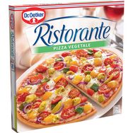 Pizza à pâte fine et croustillante richement garnie de tomates, de poivrons, de préparation de piments doux et d'oignons, surgelée. Sa pâte fine et croustillante est généreusement garnie d’un subtil mariage de légumes - tomates cerises, poivrons verts et jaunes, pepperonis et oignons rouges - associé au fromage (Edam et Mozzarella) sans oublier les herbes aromatiques sur un lit de coulis de tomates. • Pizza à la pâte fine et croustillante ; • Généreusement garnie de tomates cerises, poivrons verts et jaunes, peppéronis et oignons rouges ; • Riche en fromage : Edam et Mozzarella ; • Conservation de 12 mois et qualités gustatives préservées grâce à la surgélation ; • Rapide et facile à préparer : cuisson de 11 à 13 minutes au four, c’est prêt, dégustez ! Ristorante Vegetale : un subtil mariage de légumes Plus équilibrée qu’une pizza au fromage et à la recette digne des meilleures pizzas italiennes, la Ristorante Vegetale comblera les amoureux de légumes les plus gourmands. Végétariens, flexitariens ou juste curieux ? Peu importe votre régime alimentaire : régalez-vous avec notre pizza végétarienne la plus gourmande! Rapide et facile à préparer ! Vous devez disposer d’un four pour cuire votre pizza : four traditionnel, four à chaleur tournante ou four à gaz. Préchauffez votre four à 220°C (four traditionnel), 200°C (four chaleur tournante), Th. 6 (four à gaz). Sortez la pizza de son emballage. Placez la pizza surgelée sur la grille dans la partie inférieure de votre four. Faites cuire 11 à 13 minutes (le temps de cuisson peut varier en fonction de votre four). Les pizzas Ristorante Ristorante, c’est l'alliance parfaite d'ingrédients frais et de qualité et d'une pâte fine et croustillante... pour retrouver chez vous toutes les saveurs du restaurant italien ! Laissez-vous surprendre par leurs garnitures généreuses et savoureuses et découvrez sans tarder toutes les recettes de Ristorante, de la plus simple à la plus originale, conçues pour varier les plaisirs et satisfaire toutes les papilles ! Une pizza individuelle, partagée avec son partenaire pour un diner romantique à l'italienne. A partager également avec sa famille ou ses amis pour un moment de partage, convivial et chaleureux.