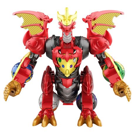 Cette figurine de combat géante est l'évolution ultime de Dragonoid. Place la bille Bakugan sur sa poitrine pour la lancer et partir au combat !