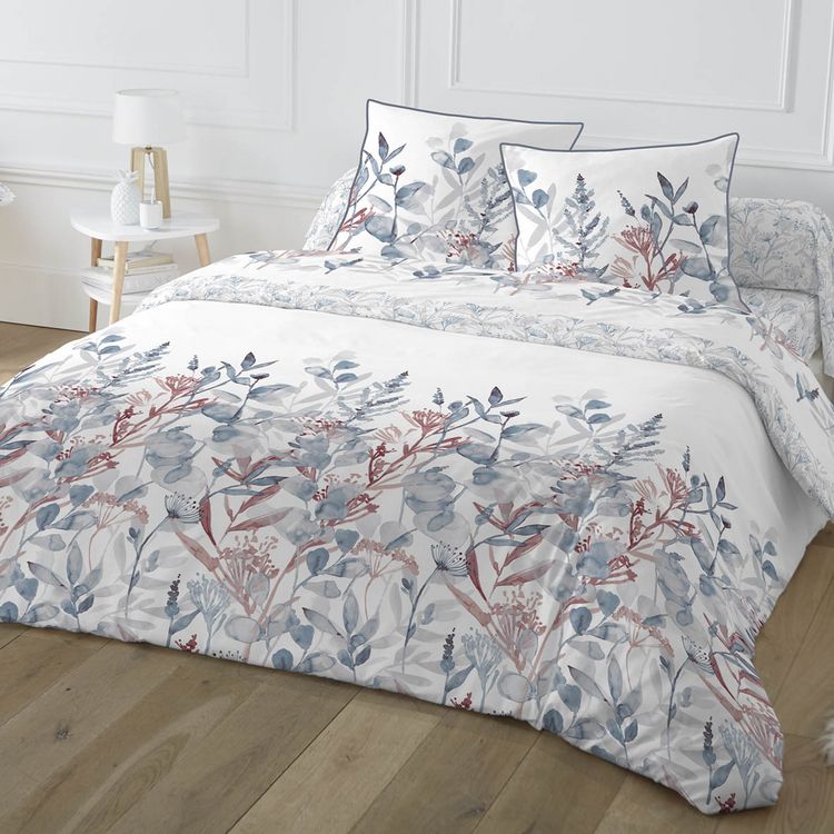 Drap plat pour lit 1 ou 2 personne(s) en toile pur coton tissée bien serré, douce au toucher, confortable et résistante. Un motif feuillages qu'on dirait peint à l'aquarelle, des couleurs subtiles et raffinées... un drap au charme intemporel, qu'on associe à la housse de couette et aux taies coordon