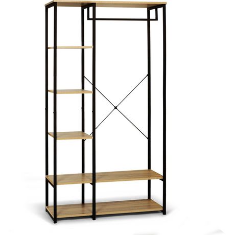 Craquez pour un nouveau dressing au design industriel moderne ! Le dressing ouvert Memphis, bi-matière en bois et métal, sera idéal dans une chambre, un salon ou un bureau. Meublez la pièce de votre choix avec goût dans un style loft factory. Les 5 tablettes maxi capacité vous permettront de disposer élégamment vos chaussures, vêtements à plier, paniers de rangement.
