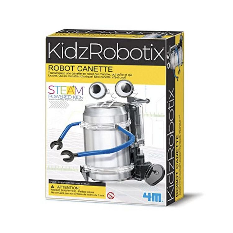 Kit jouet scientifique Fabrique un robot Kidz Labs : Contient le nécessaire pour fabriquer un robot tronc mécanique, moteur, fils électrique, yeux loucheurs, et vis..Contient aussi des instructions détailléesPile AA 1.5 V non incluse. Avec ce kit scientifique pour enfant vous pourrez transformer une simple canette en un robot qui marche et qui louche. Ce jeu éducatif et scientifique permettra à vos enfants à partir de 8 ans de pouvoir s'amuser tout en découvrant la robotique. Ils pourront assembler ce robot grâce aux pièces et aux explications contenues dans le kit. Une fois le robot canette assemblé, les enfants pourront s'amuser avec! Introduisez vos enfants à la science et la technologie de façon ludique avec ce kit.
