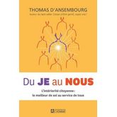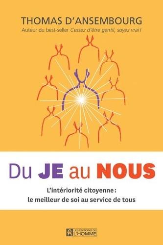 Un livre profondément spirituel, tourné vers l'avenir. Devant le chaos du monde, les injustices et les catastrophes, nous nous sentons impuissants et nous posons les questions suivantes, et pas seulement pour rire : Qui fuis-je ? Où cours-je ? A quoi sers-je ? Faute de trouver à l'intérieur de nous un sens à notre existence, nous avons créé une société où tout le monde court hors de soi. Cette course nous épuise et épuise la planète. Notre mal-être personnel génère des tensions que ni l'hyperactivité, ni la surconsommation, ni la course à l'argent ne peuvent apaiser et qui se répercutent sur la société. Pour Thomas d'Ansembourg, la solution se trouve à l'intérieur de nous. Il nous suggère de prendre le temps de reconnaître et de respecter notre nature intime. S'appuyant sur les découvertes étonnantes de la physique quantique, il nous propose des clés d'accès à une intériorité transformante, inspirée et inspirante, et fait un lien pionnier entre l'individuel et le collectif, entre l'intériorité et l'action juste. Illustrant son propos de nombreux cas vécus, l'auteur démontre qu'un citoyen pacifié est un citoyen pacifiant, et qu'un être humain ayant trouvé son élan de vie propre se met invariablement au service des autres. Pour lui, le développement personnel profond est la clé du développement social durable. En cette période de changement, ce livre est une invitation à réapprendre à vivre de tout notre être, pour mettre de façon efficace et généreuse le JE au service du NOUS.