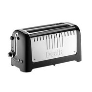 En savoir +Dualit 46065 Le grille-pain Dualit 46065 vous séduira pour ses performances mais aussi par ses qualités ! Équipé de 2 fentes extra-larges, d'un minuteur mécanique , de la fonction Peek & Pop, de la fonction décongélation... tout est réuni pour vous offrir les meilleures performances pour de petites ou très grandes quantités de pain à griller.Design :Les grille-pain DUALIT sont fabriqués de façon artisanale en Angleterre.Son design rétro en noir et inox lui permet de s'intégrer dans tous les types de cuisines, des plus altiques aux plus modernes.Performances :Toast grillé, juste doré, tiède... Le grille-pain Dualit 46065 doté d?une puissance de 2000 watts vous offre 2 fentes extra larges de 36 mm, un thermostat et un minuteur pour adapter le brunissage au goût de chacun.Si vous avez du pain congelé, n'hésitez pas ! La fonction décongélation vous permet de décongeler vos pains sans les dénaturés.Bénéficiez aussi d'un bouton pour Bagel pour griller des petits pains/bagels.Fonction Peek & Pop brevetée :Exclusif à DUALIT, cette fonction vous permet de vérifier la cuisson de votre pain sans interrompre le cycle de chauffe.Praticité : Son tiroir ramasse-miettes vous facilitera le quotidien ! En effet, plus besoin de déplacer le grille-pain pour le vider, une simple pression suffira à extraire le tiroir. Un support viennoiserie et une grille réchaud sont présents pour garder à bonne température vos croissants, brioches, etc. Sécurité :Ne vous brûlez pas les doigts ! La remontée extra haute du pain vous permet d'attraper facilement les petites tranches de pain en évitant les brûlures.
