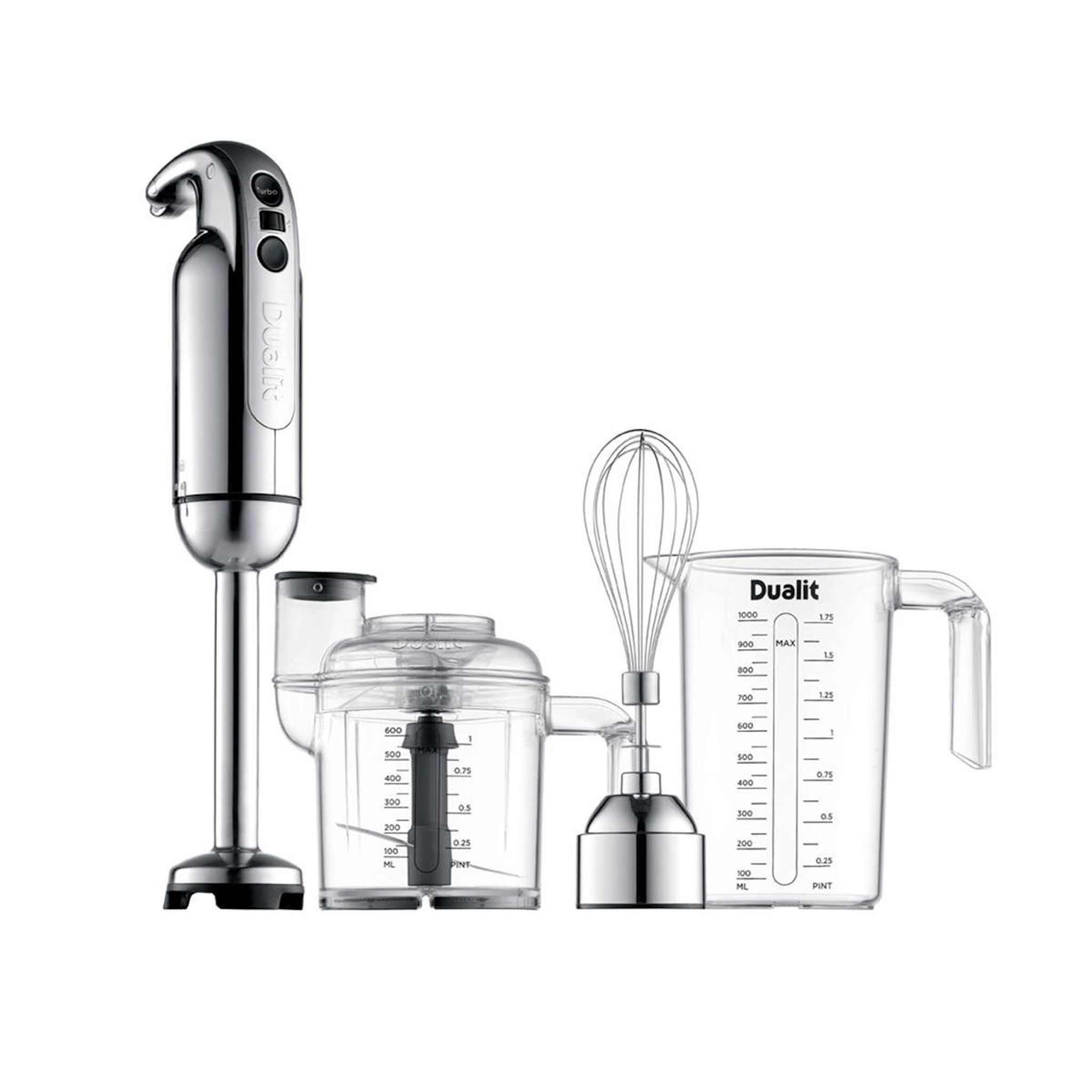 Dualit 88930 Vous voulez un assistant de cuisine tous azimuts qui fait des travaux légers de tâches culinaires tous les jours? Le mixeur plongeant multitâche de Dualit vous permettra de hacher, réduire en purée et fouetter en toute facilité et de façon homogène.