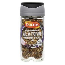 ingrédients : ail déshydraté (42%), poivre noir (40%), poivron rouge, oignon déshydraté, poivron vert, arôme naturel d'ail.