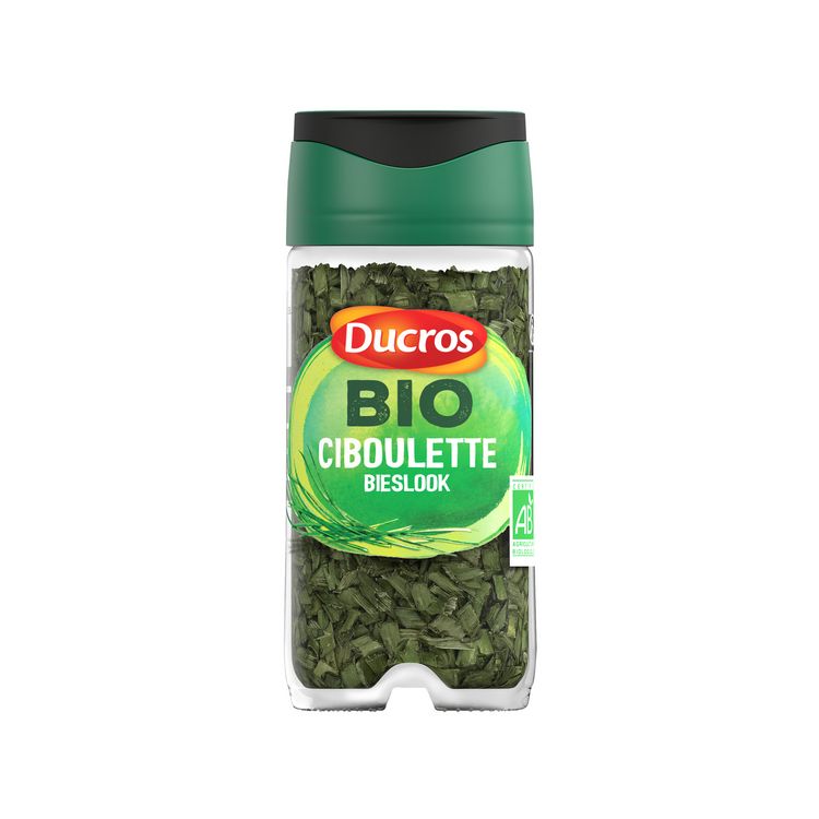 Découvrez la gamme biologique de Ducros ! Pour des arômes préservés, cette ciboulette est protégée par un opercule fraîcheur.