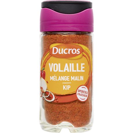 ingrédients : sel, piment doux (6%), dextrose, poivre noir, oignon déshydraté (2,8%), curcuma, fenouil, exhausteur de goût : glutamate monosodique, épices, graine de coriandre, gingembre, muscade, amidon de pomme de terre, antiagglomérant : dioxyde de silicium, graine de MOUTARDE,CELERI, plantes aromatiques.