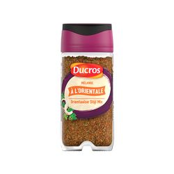 Ingrédients : epices (oignon déshydraté (24%), ail déshydraté, cumin (12%), échalote déshydratée, paprika, poivron rouge, gingembre, poivre noir), herbes (persil (9%), romarin, sarriette, basilic, marjolaine, origan, thym), huile d'olive vierge extra.