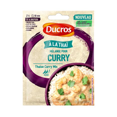 Pour 4 pers. / Prép. : 10 min. / Cuisson : 15 min.VOUS AVEZ BESOIN DE :• 500g de queues de crevettes décortiquées • 400ml de lait de coco • 1 oignon émincé • 200ml de crème • 1 c. à soupe d'huile végétale • 3 brins de coriandre ÉTAPES FACILES... 1. Saisir les crevettes décortiquées dans une poele avec l'huile puis ajouter l'oignon émincé et cuire 2 min à feu doux. 2. Saupoudrez le contenu du sachet et enrobez vos crevettes du mélange d'épices. 3. Ajoutez la crème et le lait de coco et cuire 5 min après ébullition. 4. Ajoutez les feuilles de coriandre avant de servir accompagné d'un riz blanc.
