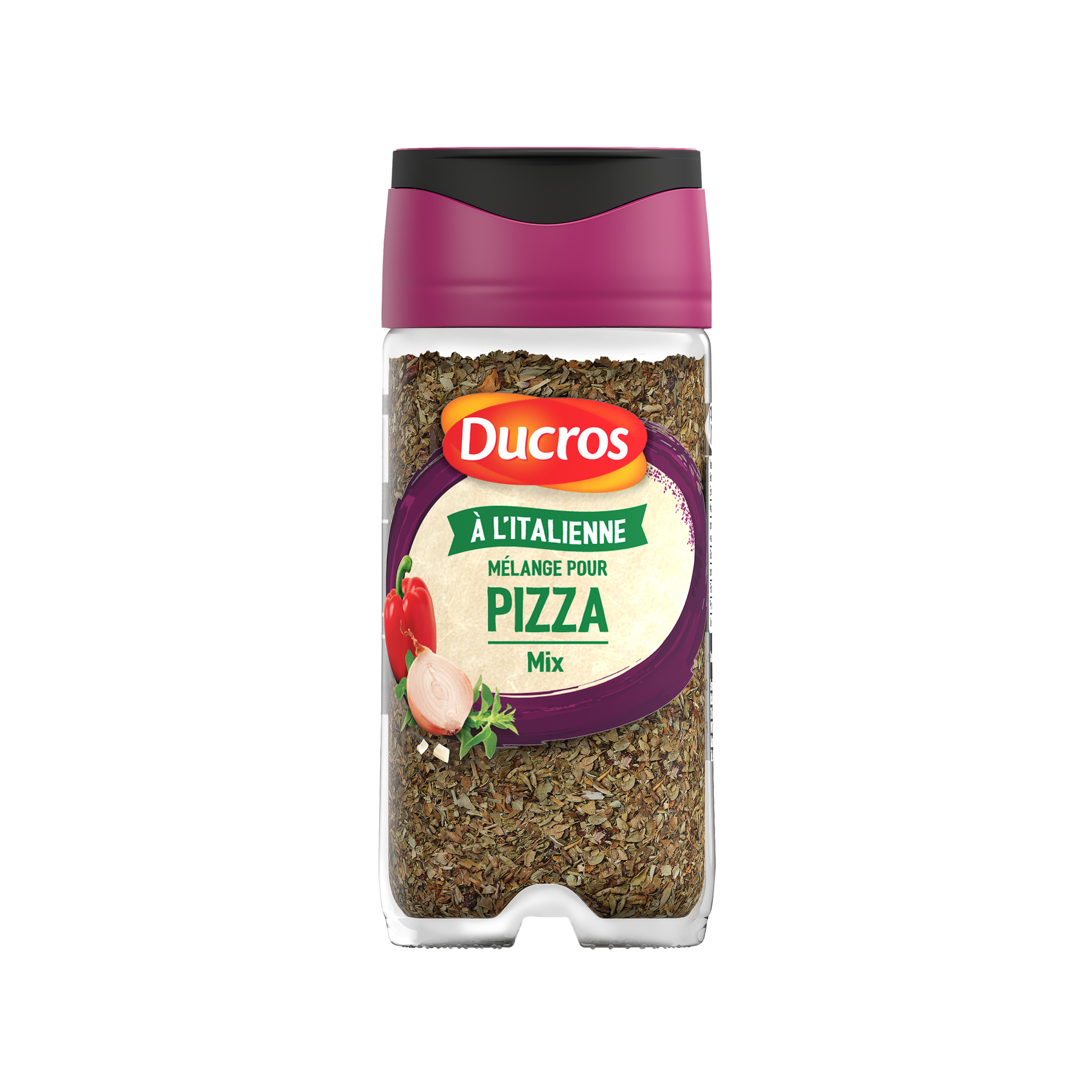 Ingrédients : origan (60%), basilic déshydraté, poivron rouge (9%), oignon déshydraté (7%), ail déshydraté, romarin, marjolaine.
