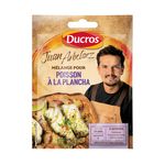 Vous avez besoin de : - 4 pavés de cabillaud de 150g chacun - 2 pommes de terre de taille moyenne - 2 citrons verts - Piment d'Espelette Ducros - Sel - Huile d'olive Ma recette de cabillaud mariné à l'Anelote, à la plancha Instructions : 1. Préparez la marinade : saupoudrez le contenu du sachet sur une face de vos pavés de poisson. Salez et assaisonnez avec une pincée de piment d'Espelette. Réservez au frais. 2. Coupez les pommes de terre en fines lamelles.3. Découpez le papier cuisson en 4. Huilez-les et formez une rosace avec les lamelles de pommes de terre sur le papier cuisson. Versez un filet d'huile d'olive. Disposez un pavé sur chaque rosace, sur la face sans les épices. 4. Déposez le tout sur la plancha légèrement huilée, à feu moyen. Laissez cuire 10 minutes. 5. Retirez les pavés de la plancha et laissez reposer 5 min sous un papier aluminium. Dressez-les sur le plat de service en retirant délicatement les papiers cuisson. 6. Accompagnez d'un jus de citron vert, une pincée d'oignons nouveaux et d'un filet d'huile d'olive.