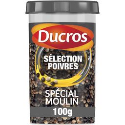 AVEC SA GAMME Les Indispensables, DUCROS VOUS PROPOSE SES POIVRES EN GRAINS, IDÉAL POUR RECHARGER VOS MOULINS. DUCROS A SÉLECTIONNÉ SES POIVRES EN FONCTION DE LEUR INTENSITÉ ET A CRÉE CETTE ÉCHELLE DES FORCES POUR VOUS AIDER À MIEUX CHOISIR LE POIVRE ADAPTÉ À VOS PLATS. CE MÉLANGE DE POIVRE EN GRAINS "DOUX", CORRESPOND À UN ASSEMBLAGE UNIQUE ENTRE LE PIQUANT DES POIVRES ET LA RICHESSE AROMATIQUE DU PIMENT DE LA JAMAÏQUE, QUI VOUS GARANTIT UNE NOTE D'INTENSITÉ DE 5.