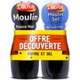 Lot 2 Moulins poivre noir / Sel Guérande OD Ce poivre noir en grains "CLASSIQUE" correspond à un assemblage unique de poivres d'origine qui vous garantit une note d'intensité de 6 pour un goût rond et équilibré. Conforme au cahier descharges IGP de l’APROSELA65 rue du Maréchal Juin44420 LA TURBALLE. OUVERT / FERMÉINDICATION GÉOGRAPHIQUE PROTÉGÉE. Récolté enFRANCE.