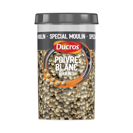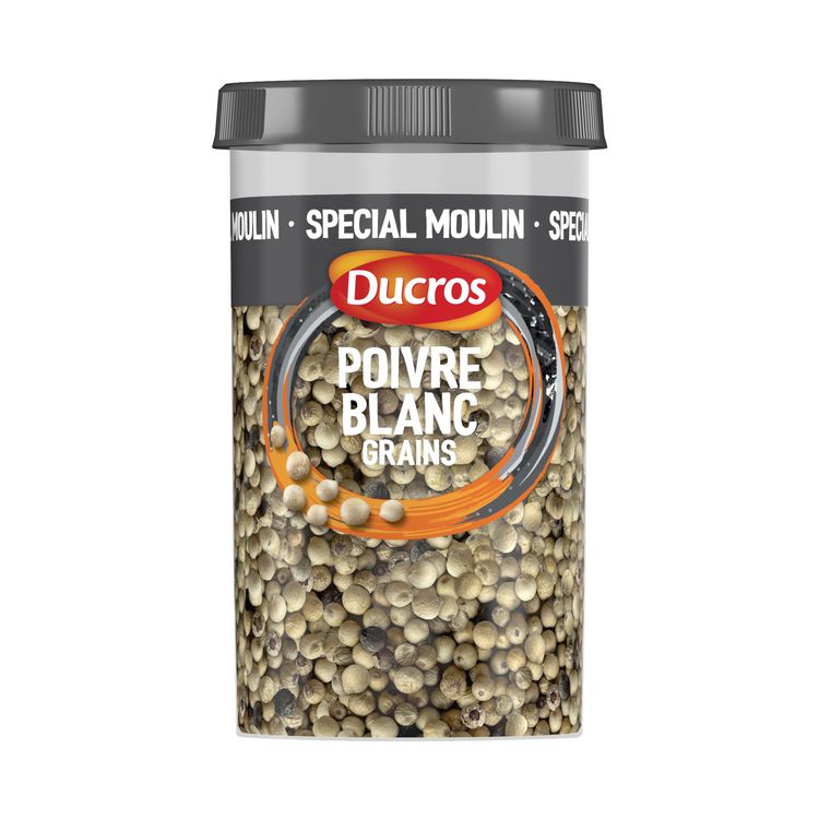 AVEC SA GAMME Les Indispensables, DUCROS VOUS PROPOSE SES POIVRES EN GRAIN, IDÉAL POUR RECHARGER VOS MOULINS. DUCROS A SELECTIONNÉ SES POIVRES EN FONCTION DE LEUR INTENSITÉ ET A CRÉE CETTE ÉCHELLE DES FORCES POUR VOUS AIDER À MIEUX CHOISIR LE POIVRE ADAPTÉ À VOS PLATS. CE POIVRE BLANC EN GRAINS "MEDIUM" GARANTIT UNE NOTE D'INTENSITÉ DE 6 POUR UNE PUISSANCE ET UN GOÛT EQUILIBRÉS.