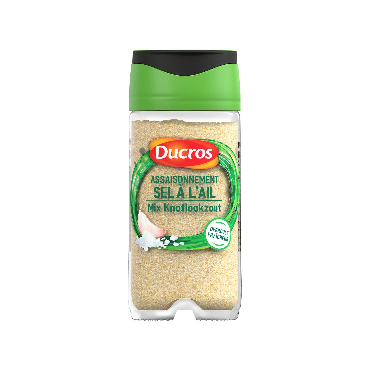 Ingrédients : sel de mer (75%), ail déshydraté (25%).